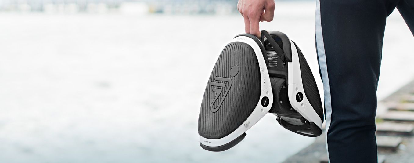 Elastic bands at the bottom allow you to easily carry your e-skates in one hand.